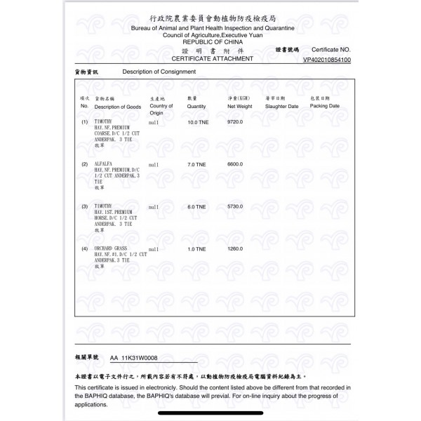 ✅ 牧草和商品會用其他外箱包裝寄出。