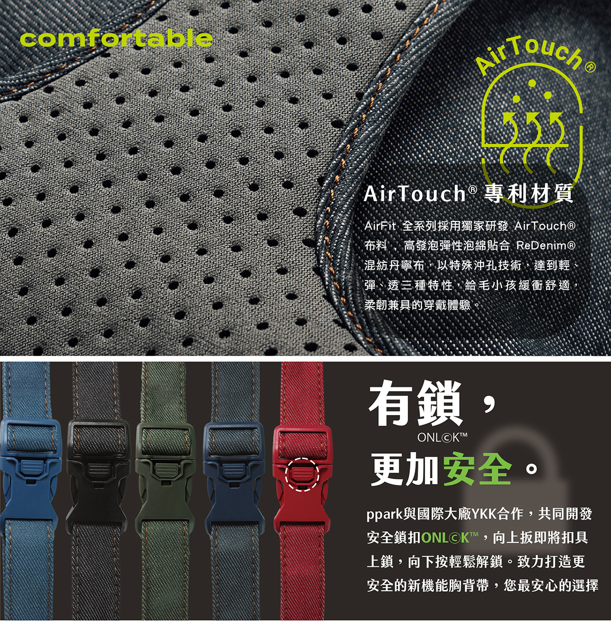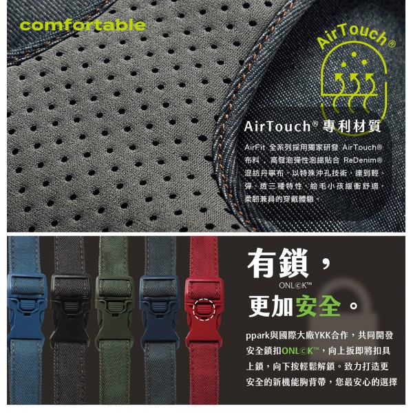材質:AirTouch透氣彈性布、牛仔布、尼龍