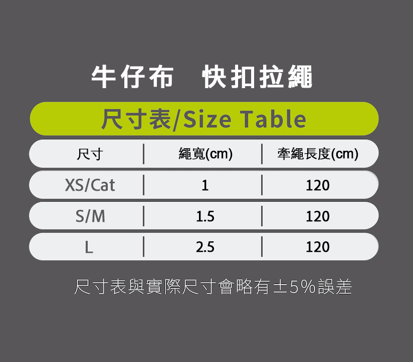 S/M號 :牽繩長度120cm 、繩寬1.5cm