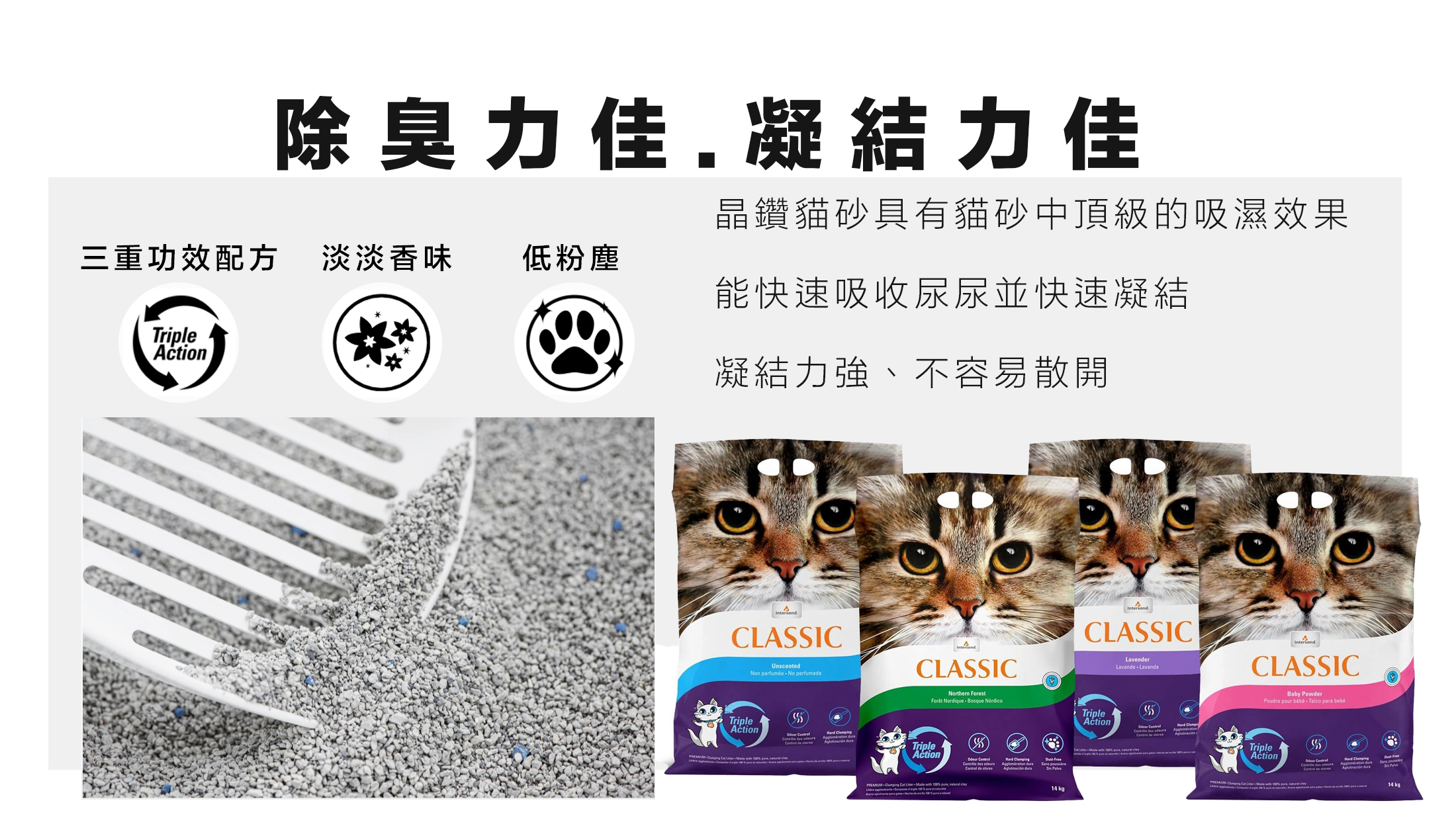 晶鑽貓砂具有貓砂中頂級的吸濕效果,能快速吸收尿尿並快速凝結,凝結力強不容易散開。