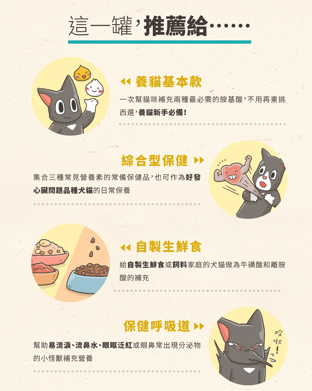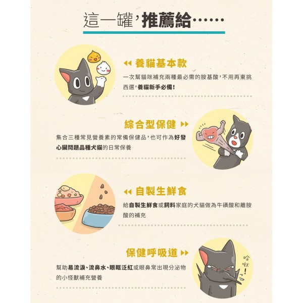 適合:犬貓皆適用,日常保養、自製生鮮食的營養補充......等等