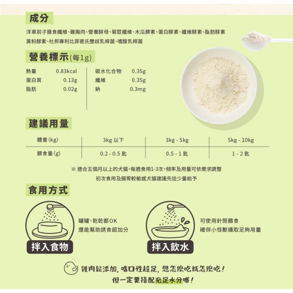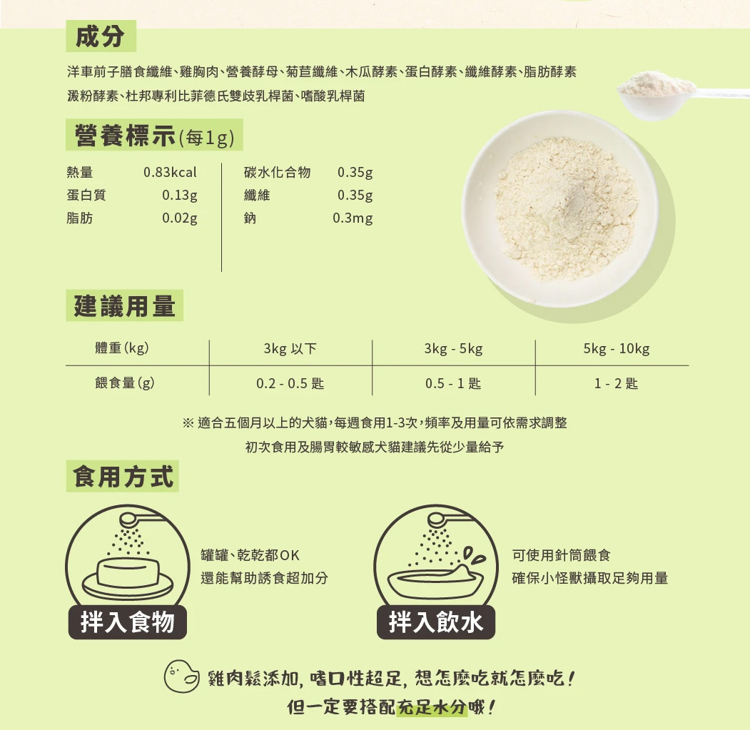 🐱適用對象:5個月以上犬貓、腸胃需求的犬貓🐶