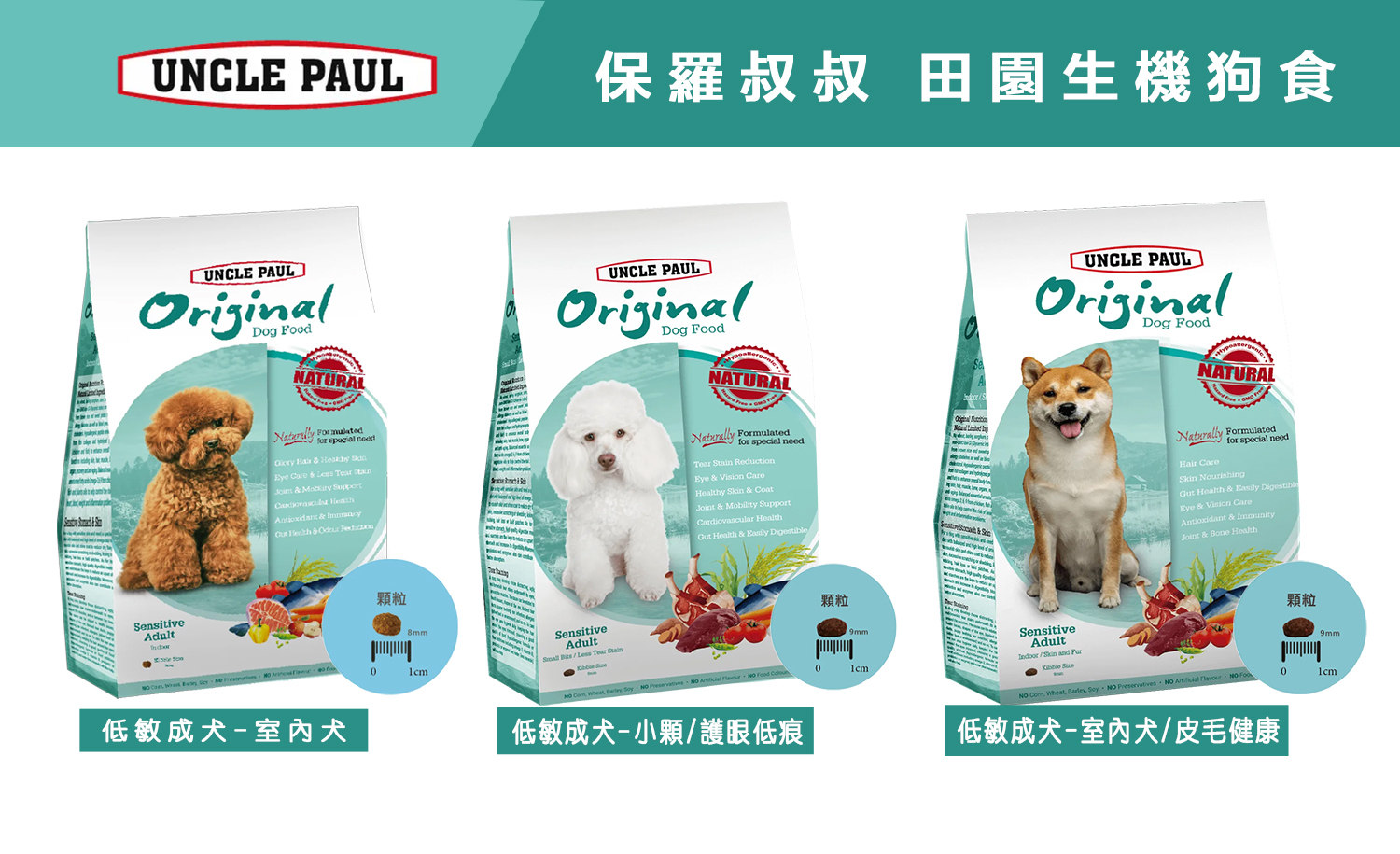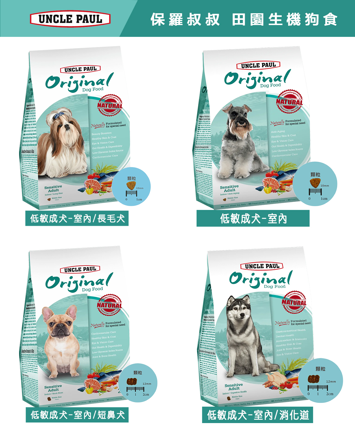 適用對象:敏感體質的短鼻犬、室内犬、成犬、熟齡犬