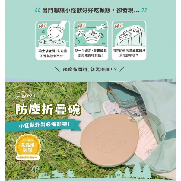A:怪獸折疊碗的蓋子為防塵用途,並非完全密封,請小心不要裝滿流動性高的泥狀或液狀食物趴趴走唷!