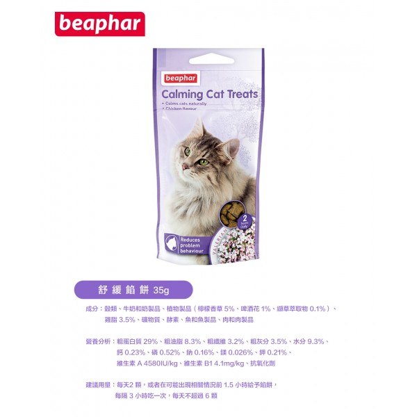成分:穀類、牛奶和奶製品、植物製品(檸檬香草5%、啤酒花1%、纈草萃取物0.1%)、雞脂3.5%、礦物質、酵素、魚和魚製品、肉和肉製品