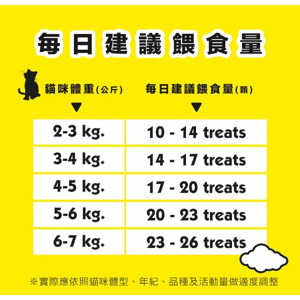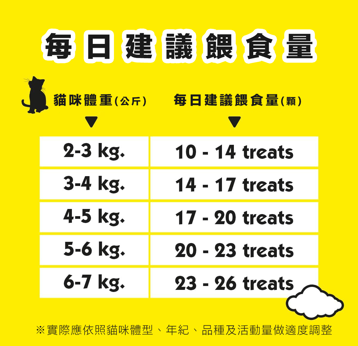 ※實際應依照貓咪體型、年紀、品種及活動量做適度調整