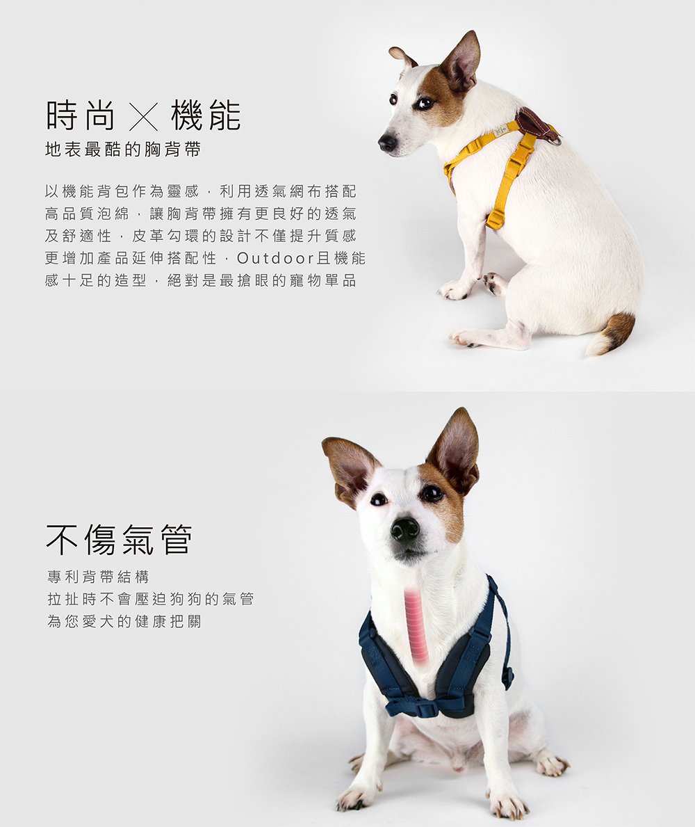 ♦︎ 專利背帶結構,拉扯、暴衝時不會壓迫狗狗的氣管。