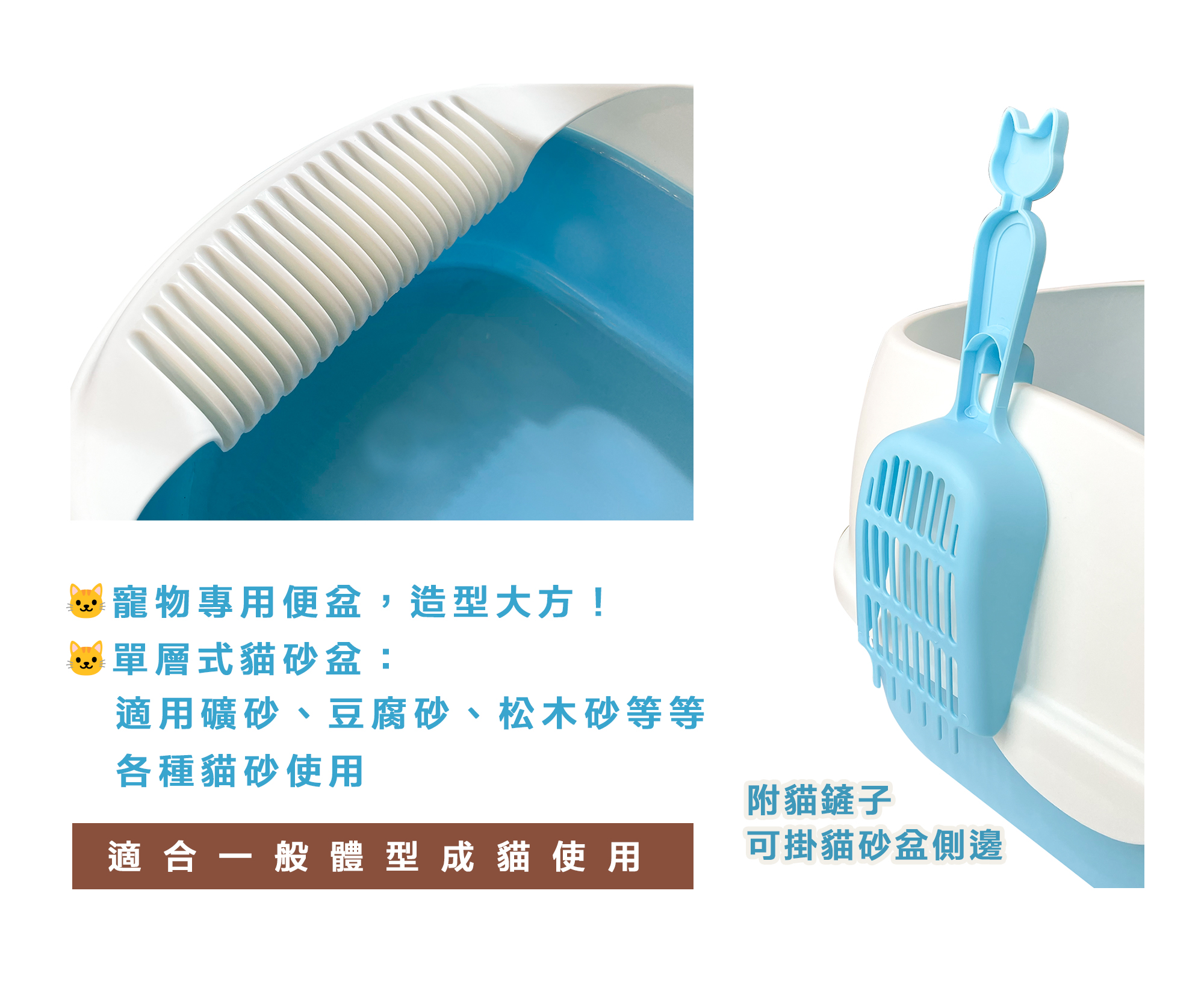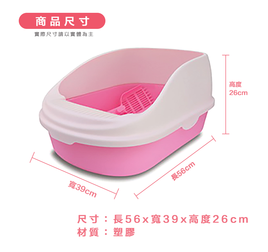 ◆ 單層式貓砂盆,適用礦砂、豆腐砂、松木砂等等各種貓砂使用