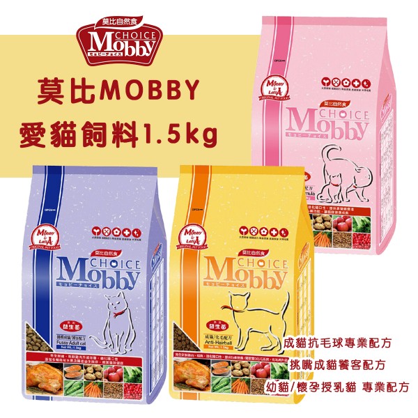 莫比MOBBY 貓飼料『幼母貓、成貓化毛、挑嘴貓』 1.5k小包 貓飼料 幼貓 成貓 飼料 母貓 挑嘴貓