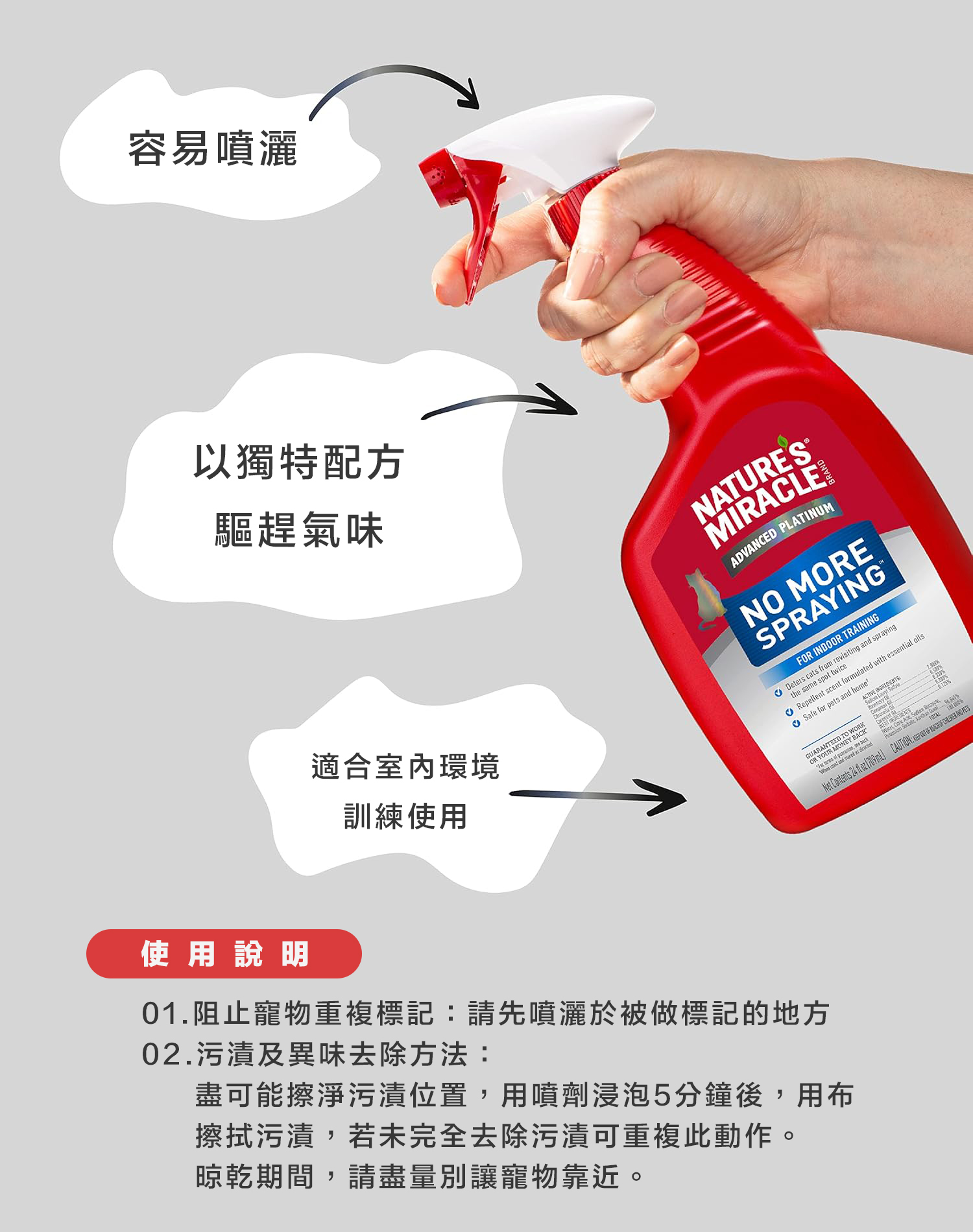01.阻止寵物重複標記:請先噴灑於被做標記的地方