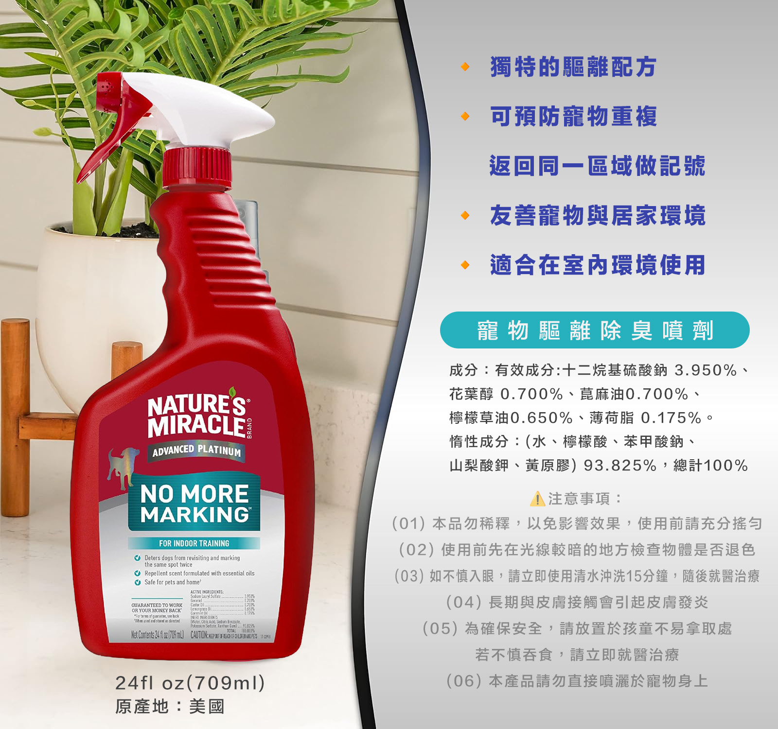 🔸 獨特的驅離配方,有助於防止寵物重複標記。