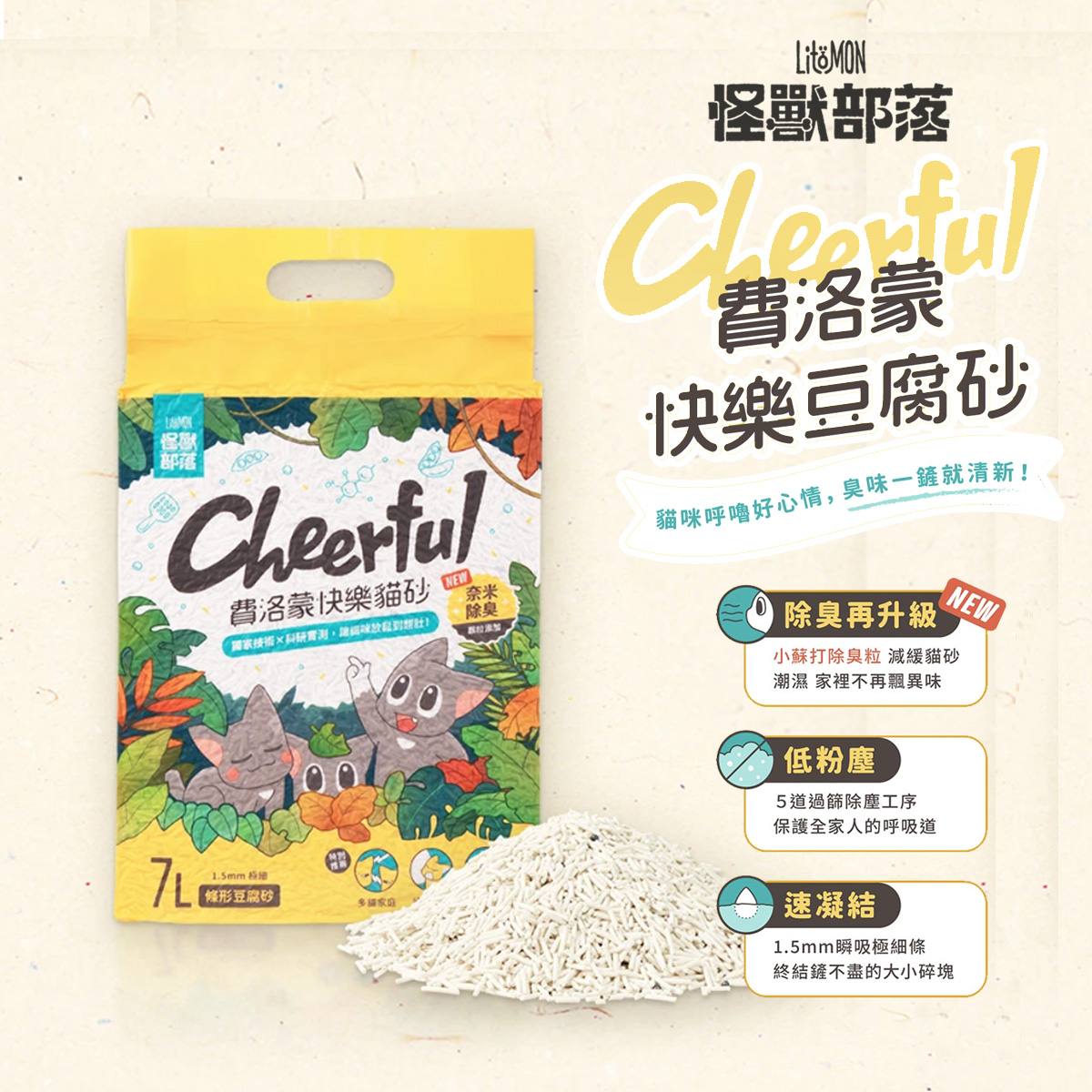 • 怪獸部落 費洛蒙快樂貓砂2.7kg『豆腐砂』 貓砂