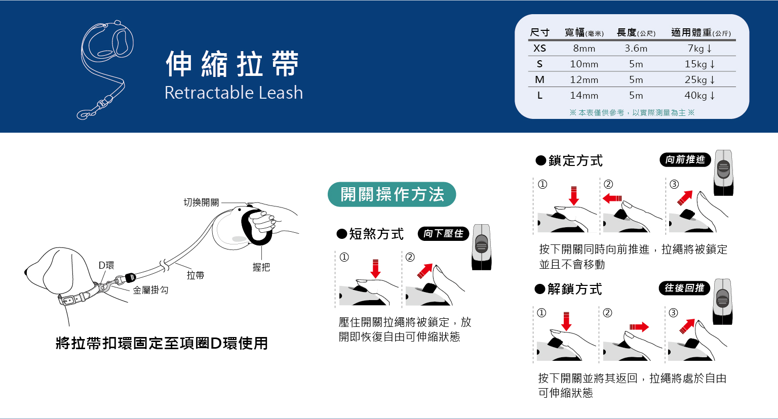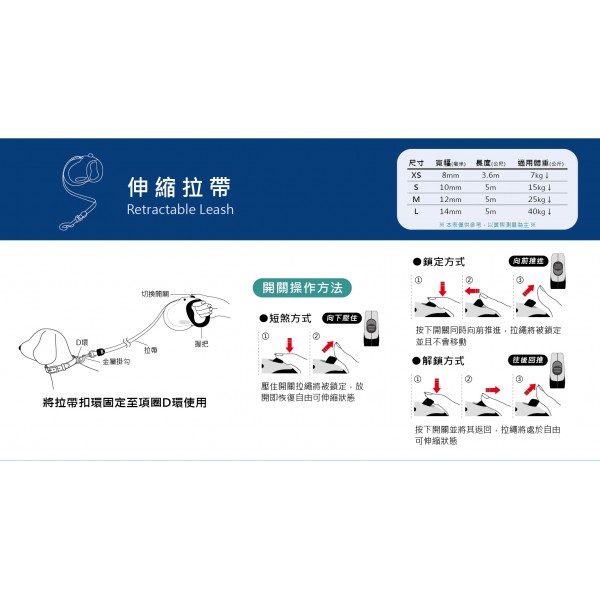 適合平常散步時使用,或者想要放牧您的狗狗時又怕他一轉眼就不見,那就是要用這款伸縮式牽繩,有效解決您的煩惱。