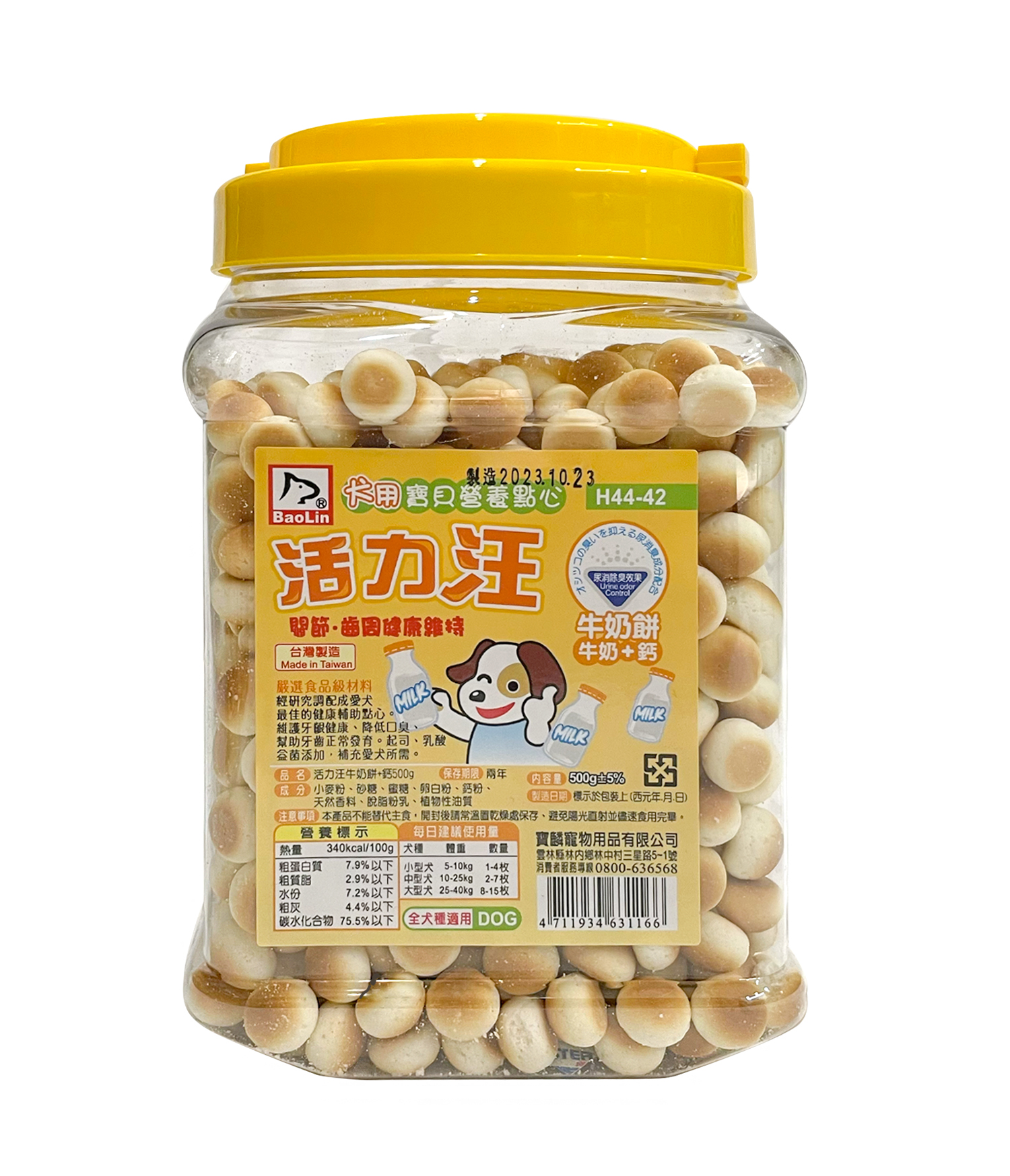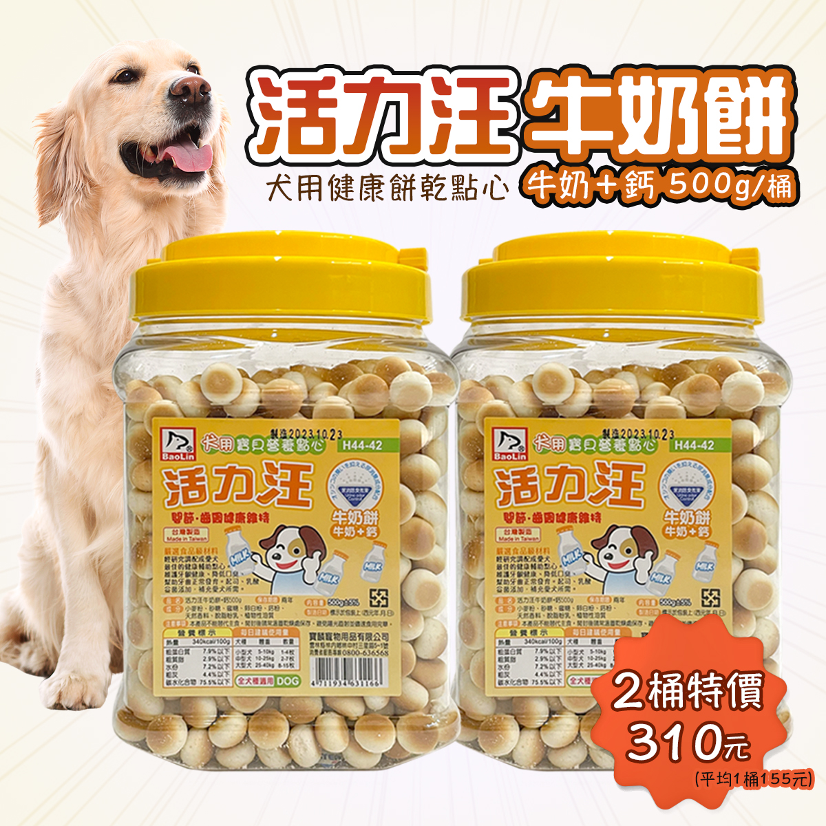 活力汪牛奶餅500g『2桶特價310元🔥』(平均一桶155元) ◆ 台灣製造,嚴選食材、維持寵物健康