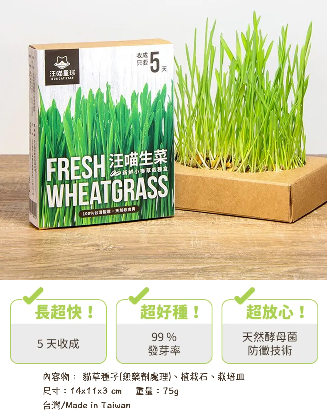 內容物: 貓草種子(無藥劑處理)、植栽石、栽培皿