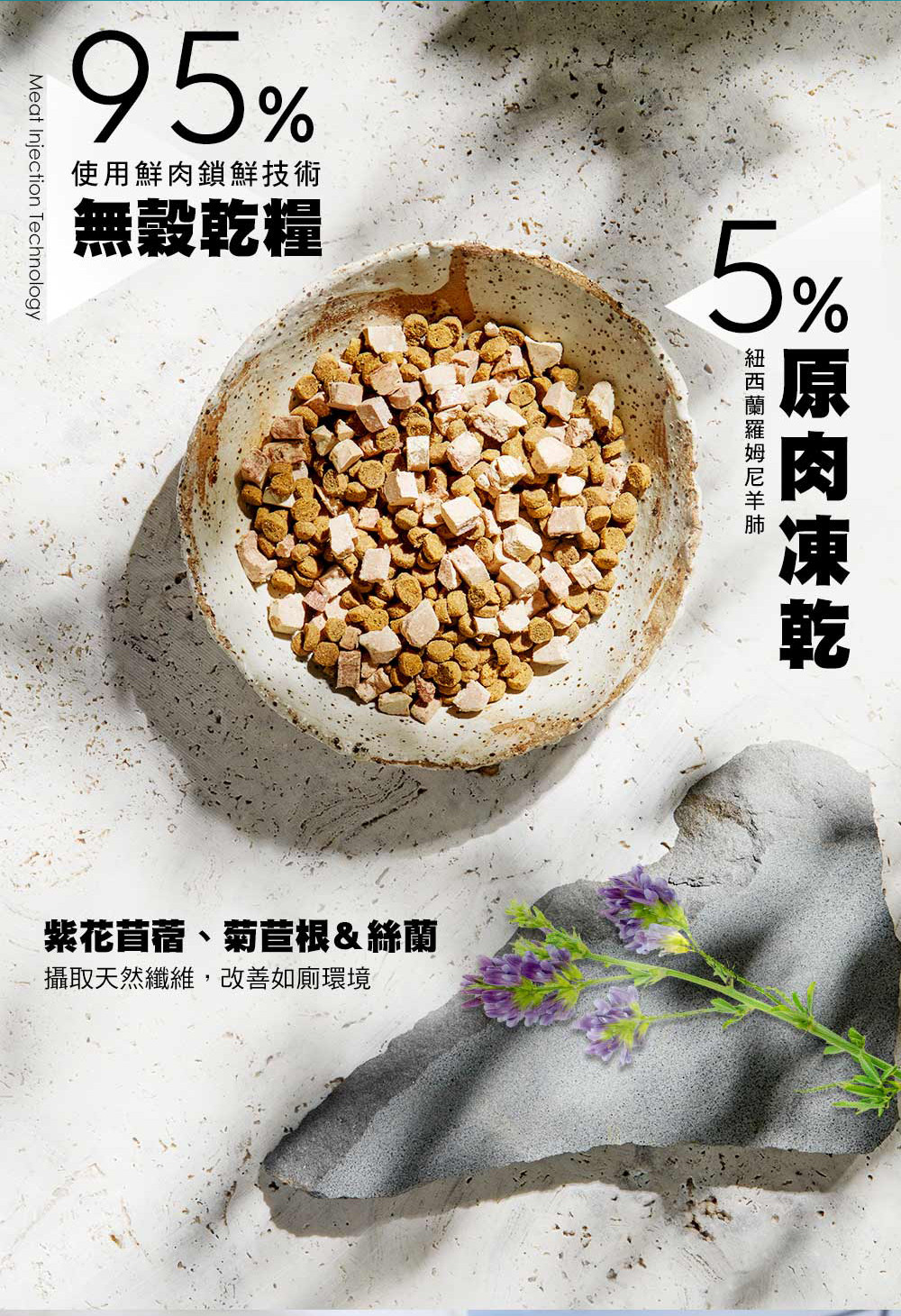 製程採用鮮肉鎖鮮技術,保留更多天然營養素及原肉自然香氣,適口性提高30%