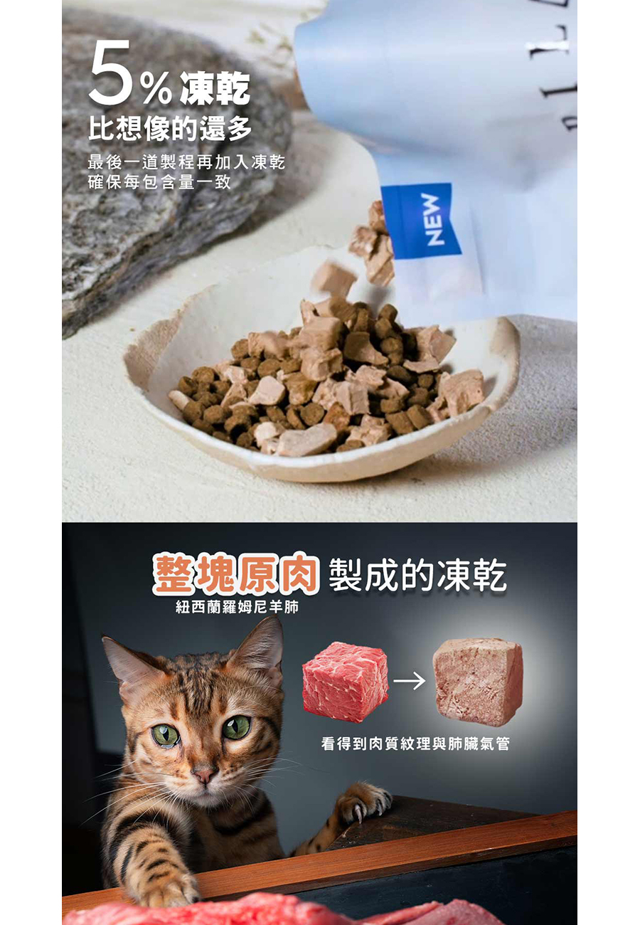 ● 無穀飼料、添加凍乾、全年齡層貓適用