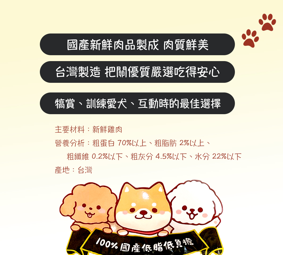 ◆ 本產品是由國產新鮮肉品製成,肉質鮮美、容易入口。