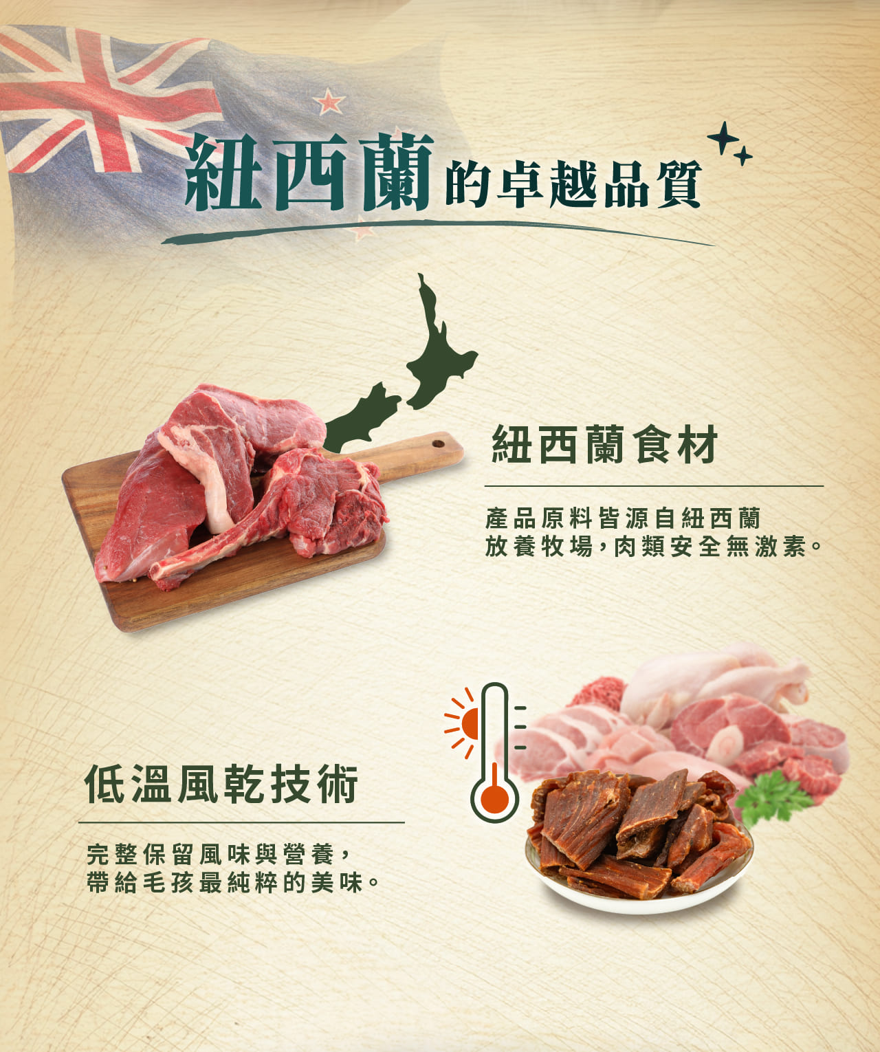 1. 100%天然放牧草飼純肉,使用牛肉為食材。